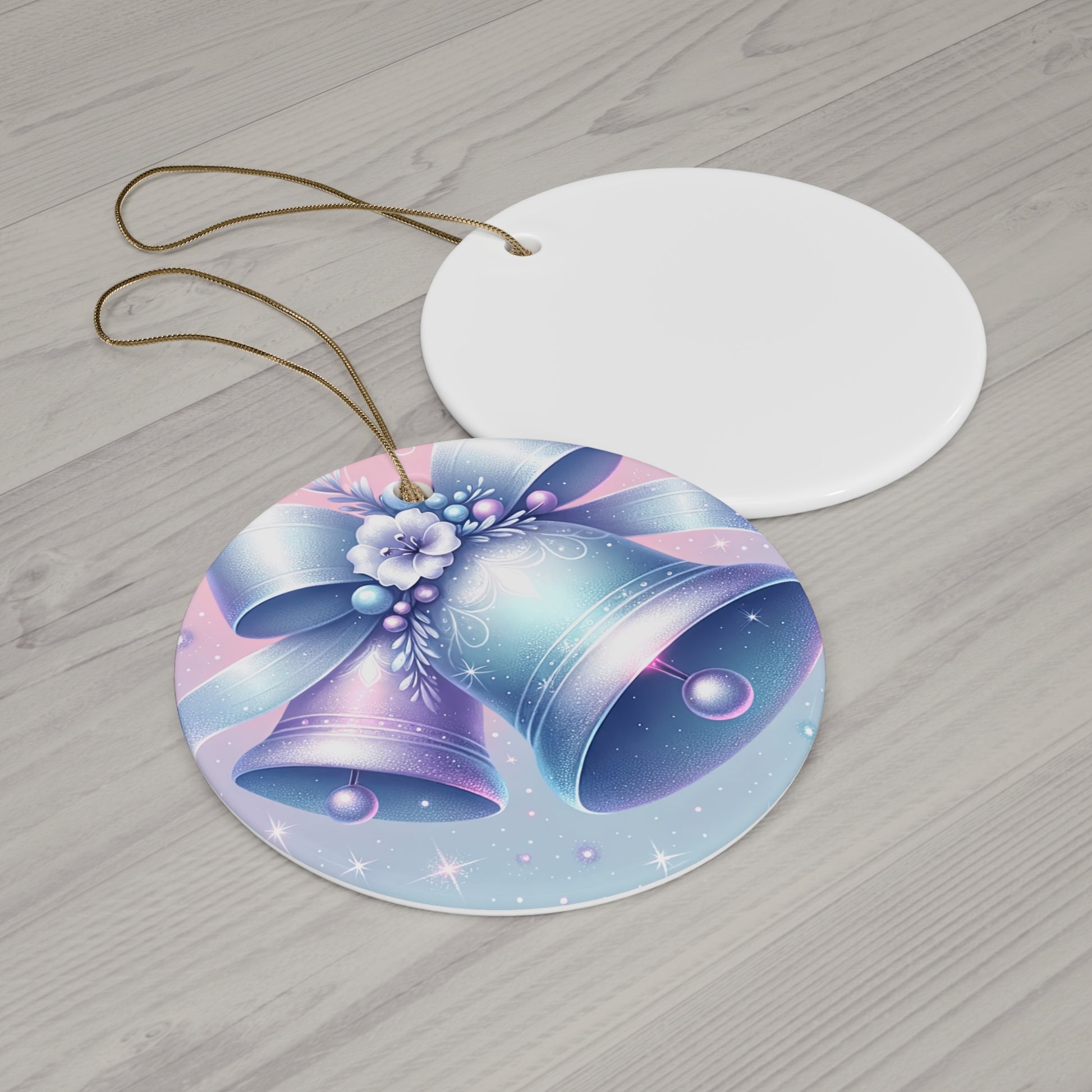 Ceramic Ornament, Christmas Bells, Winter Wonderland Decor, Blue Silver Holiday Gift, Tree Decoration, Festive Ornament