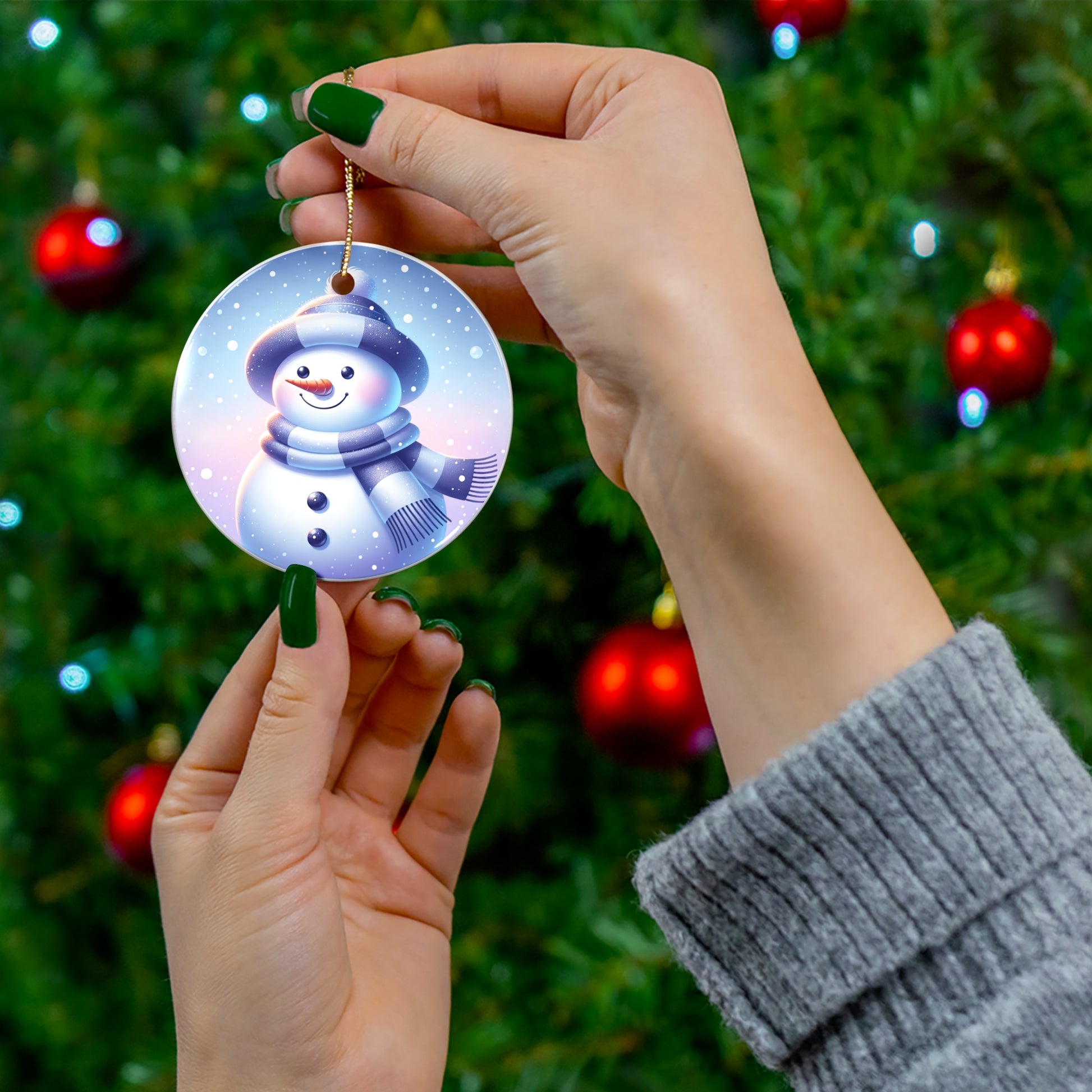 Ceramic Ornament, Snowman Christmas Ornament, Winter Wonderland Holiday Decoration, Scandinavian Hat, Blue Silver Decor, Xmas